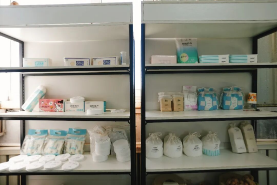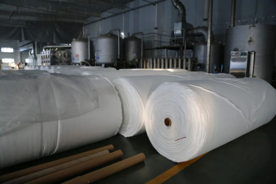 生产车间内,雪白的新疆皮棉经过梳理、水刺、烘干等工序,变为柔软细腻的无纺布卷材,再经裁切、包装,生产出印有“新疆棉”标识的卸妆棉、棉柔巾、婴幼儿湿巾等家庭卫生用品。