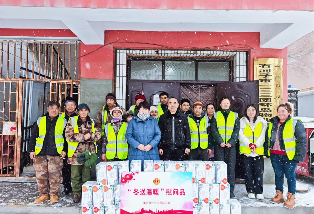 新春将至,岁寒情暖。在2026年马年新春来临之际,133团总工会主席王玲带队深入环卫作业点,走访慰问坚守岗位的一线环卫工人,送上牛奶等慰问品和新春祝福,用实际行动致敬劳动者。
