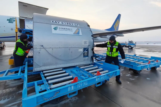 经过5个小时的长途飞行,1月4日10时,中国邮政航空有限责任公司CF9064次全货机航班平稳降落在石河子花园机场,石河子-南京“军垦·极速鲜号”冬季全货机新年再启新航程。