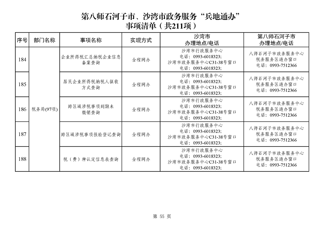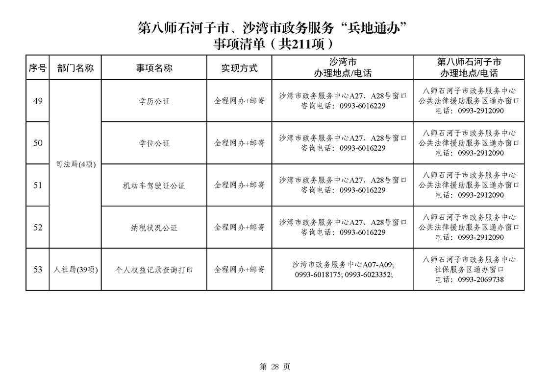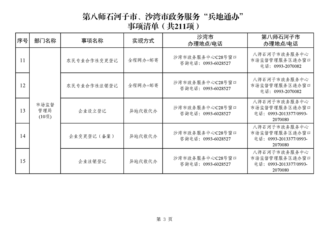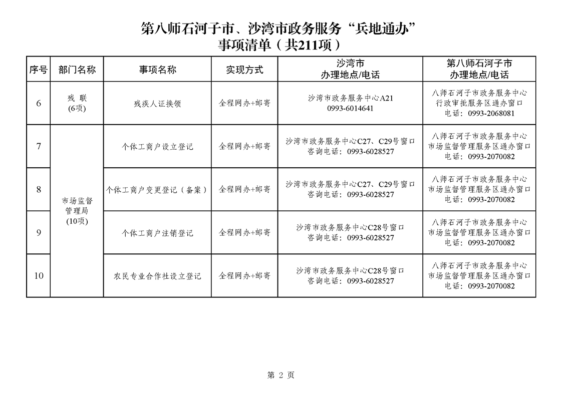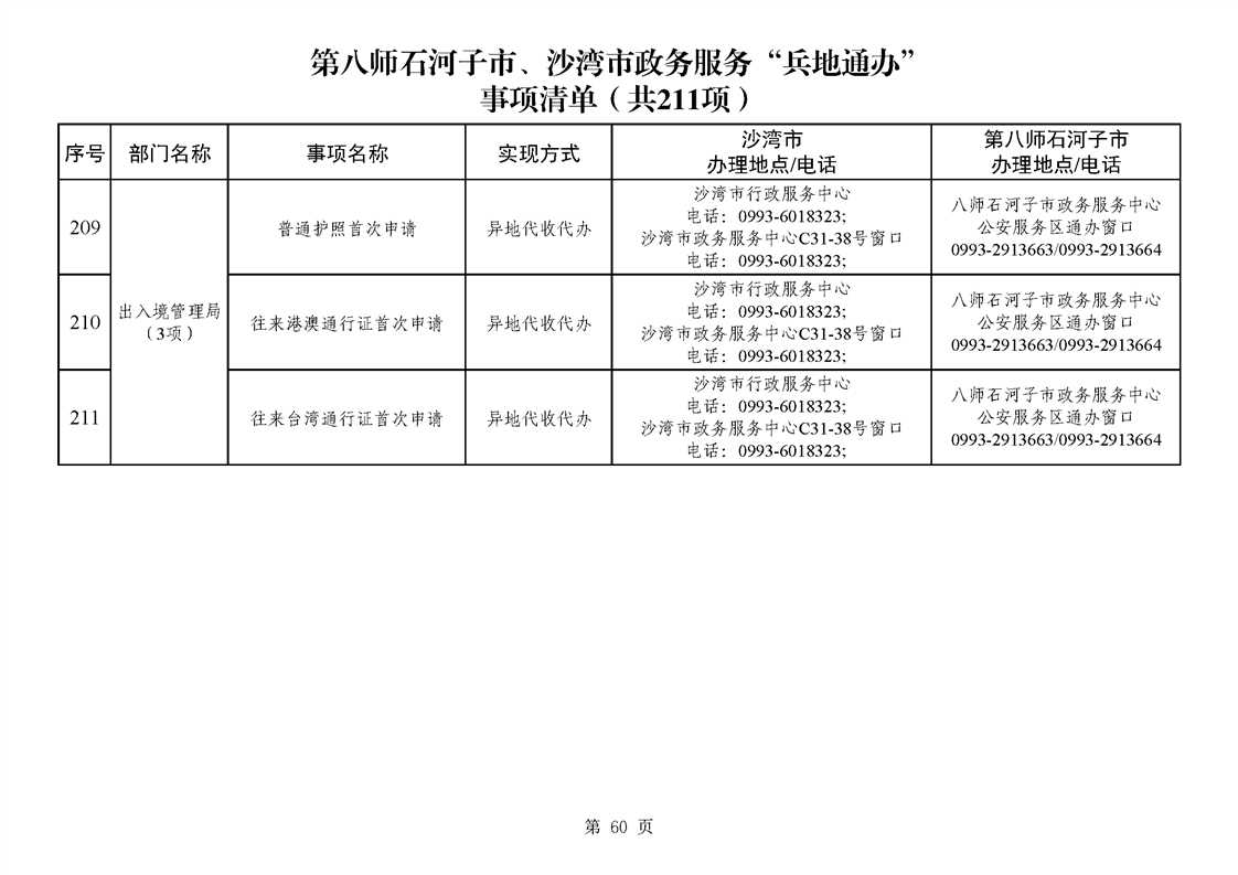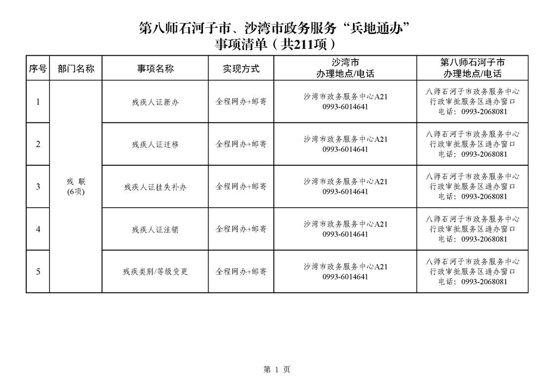 第八师石河子市、沙湾市政务服务“兵地通办”事项清单(211项)