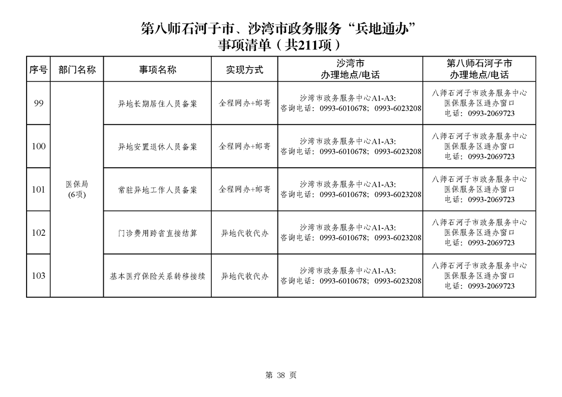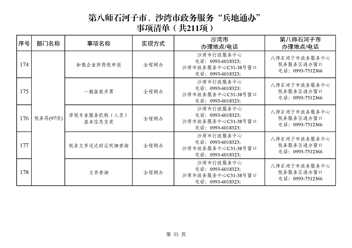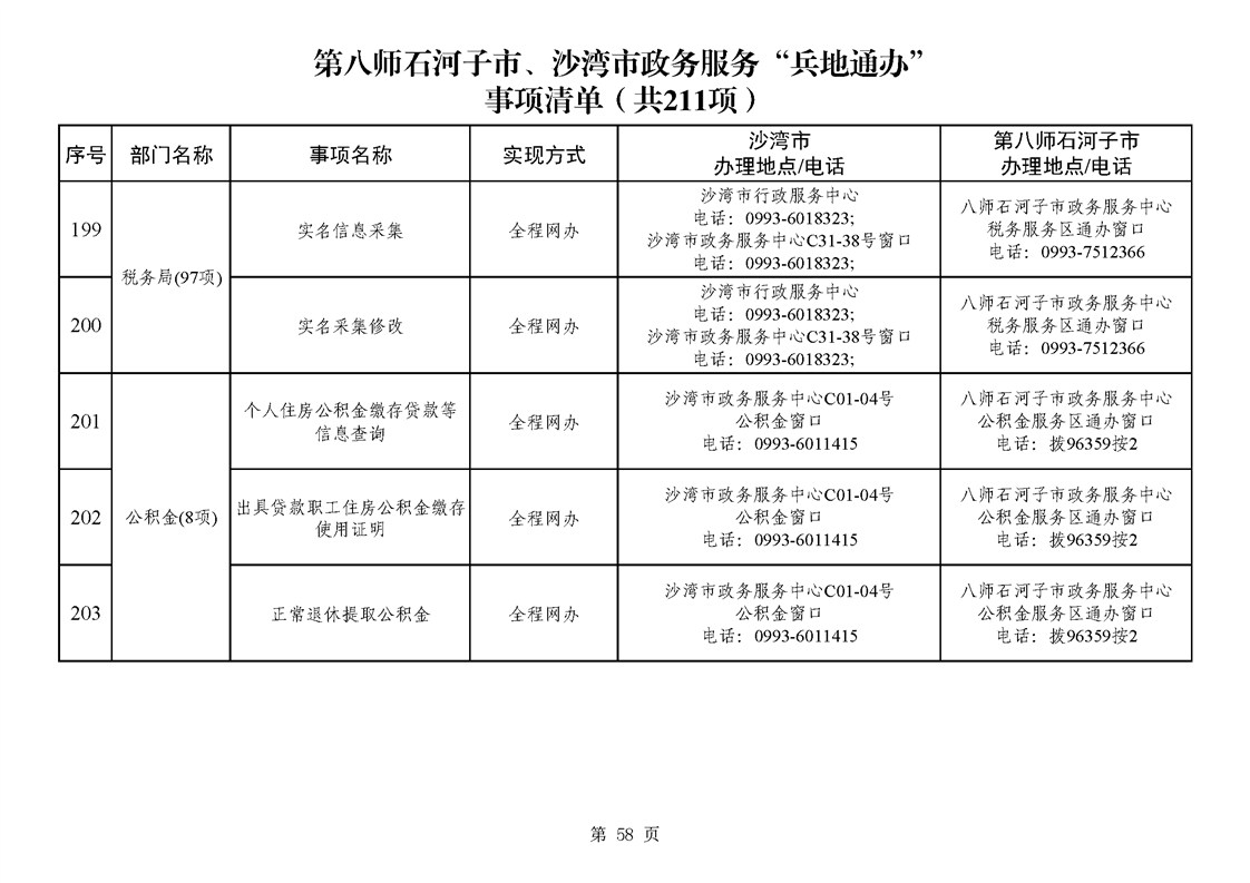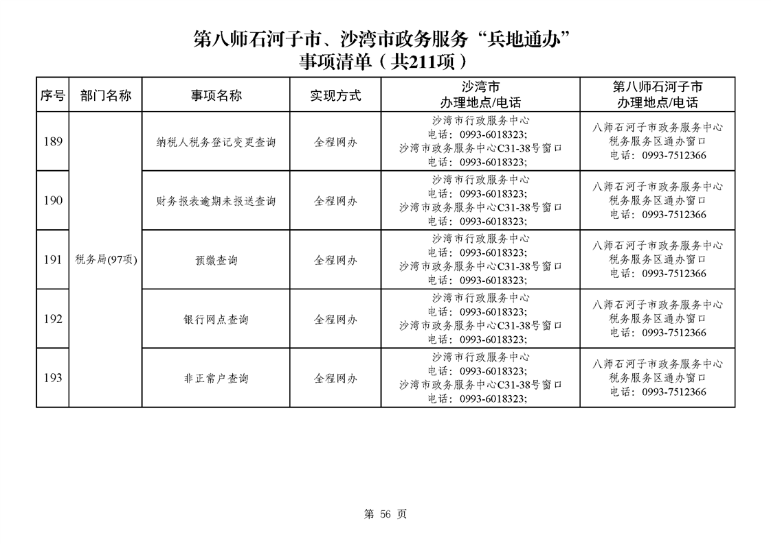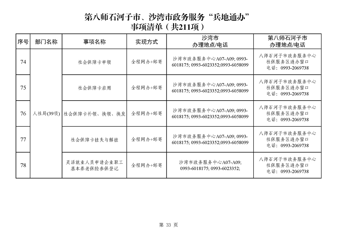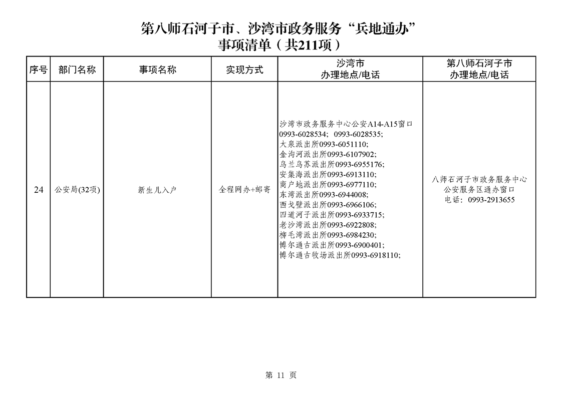 第八师石河子市、沙湾市政务服务“兵地通办”事项清单(211项)