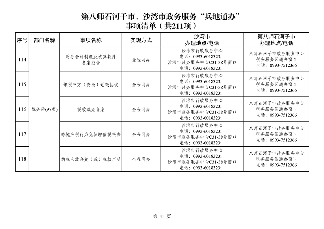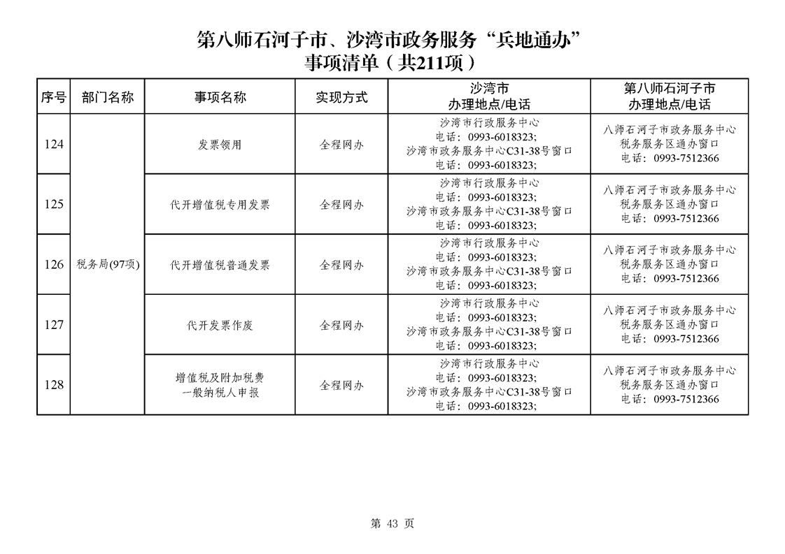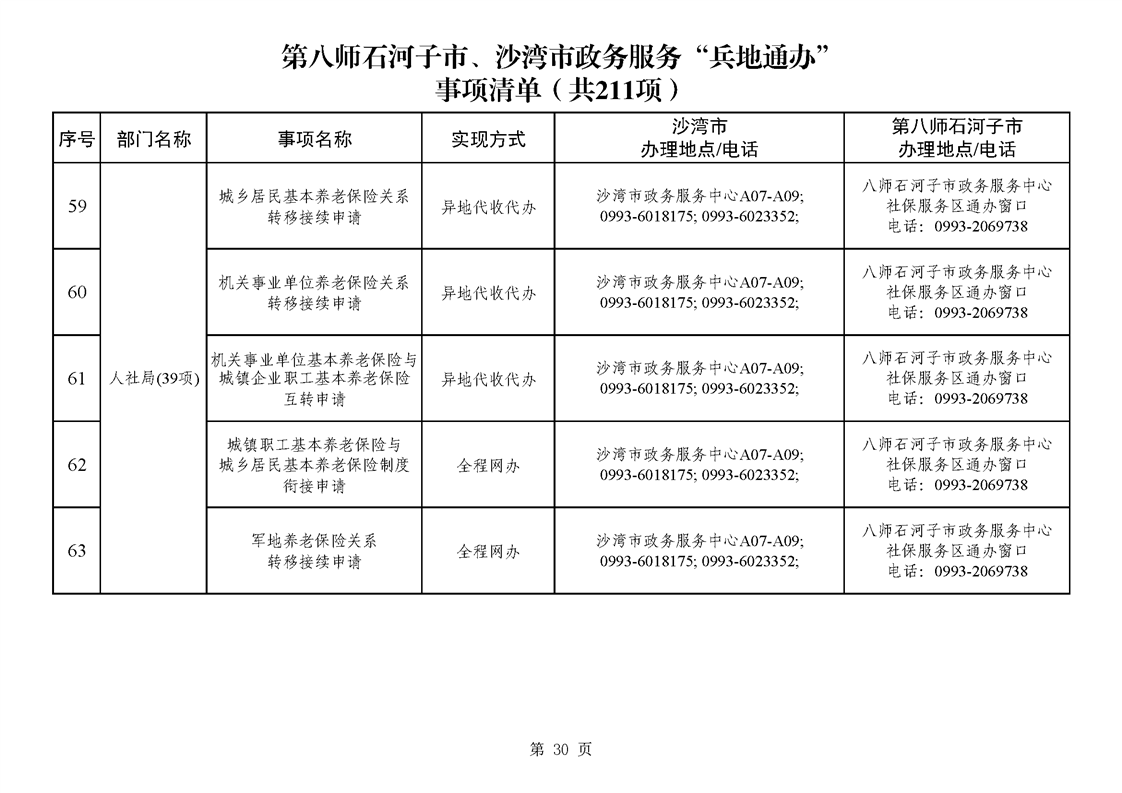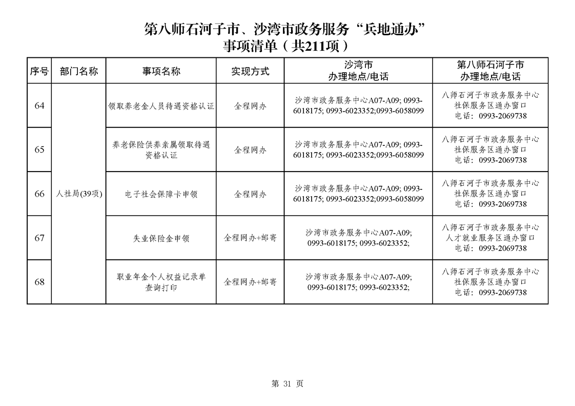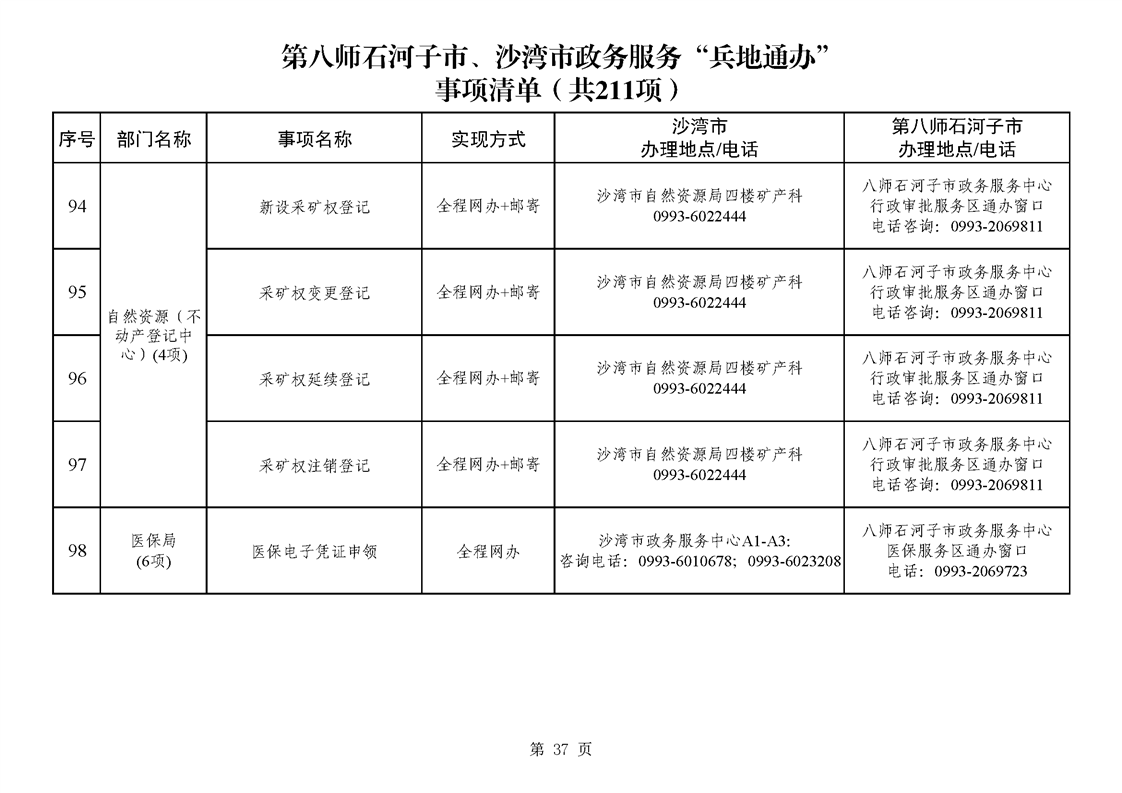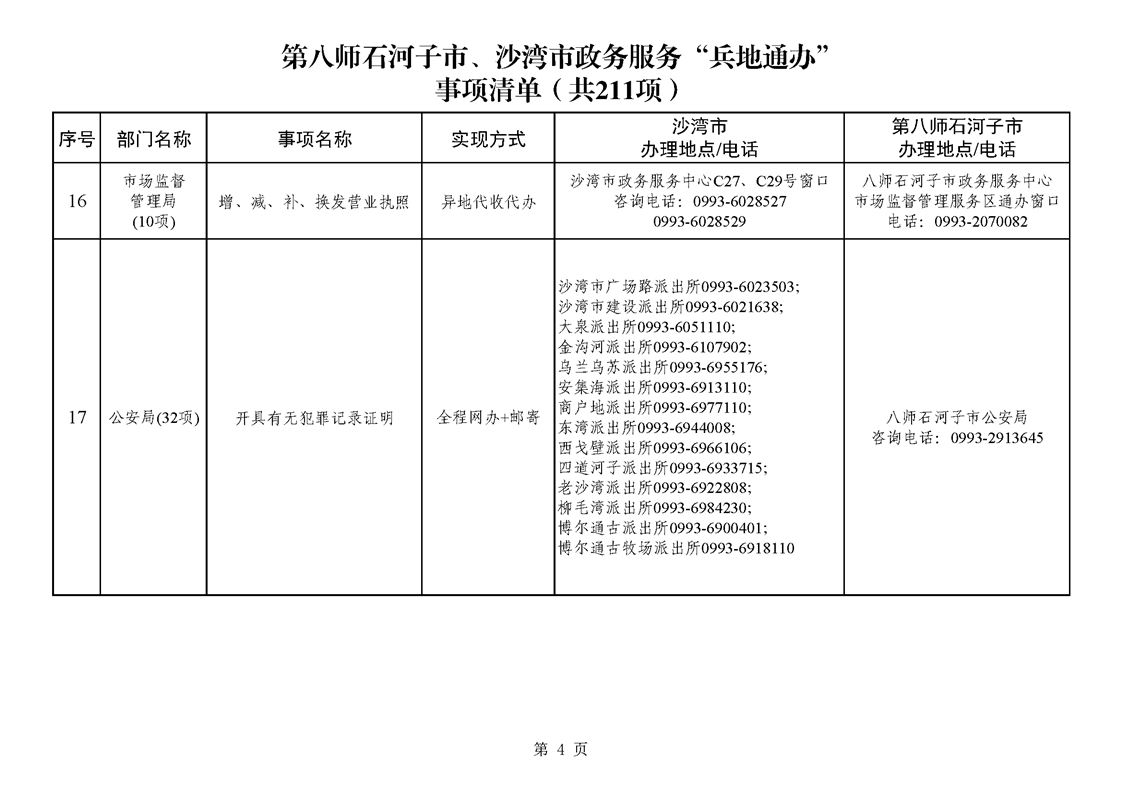 第八师石河子市、沙湾市政务服务“兵地通办”事项清单(211项)