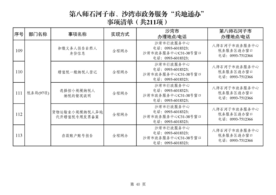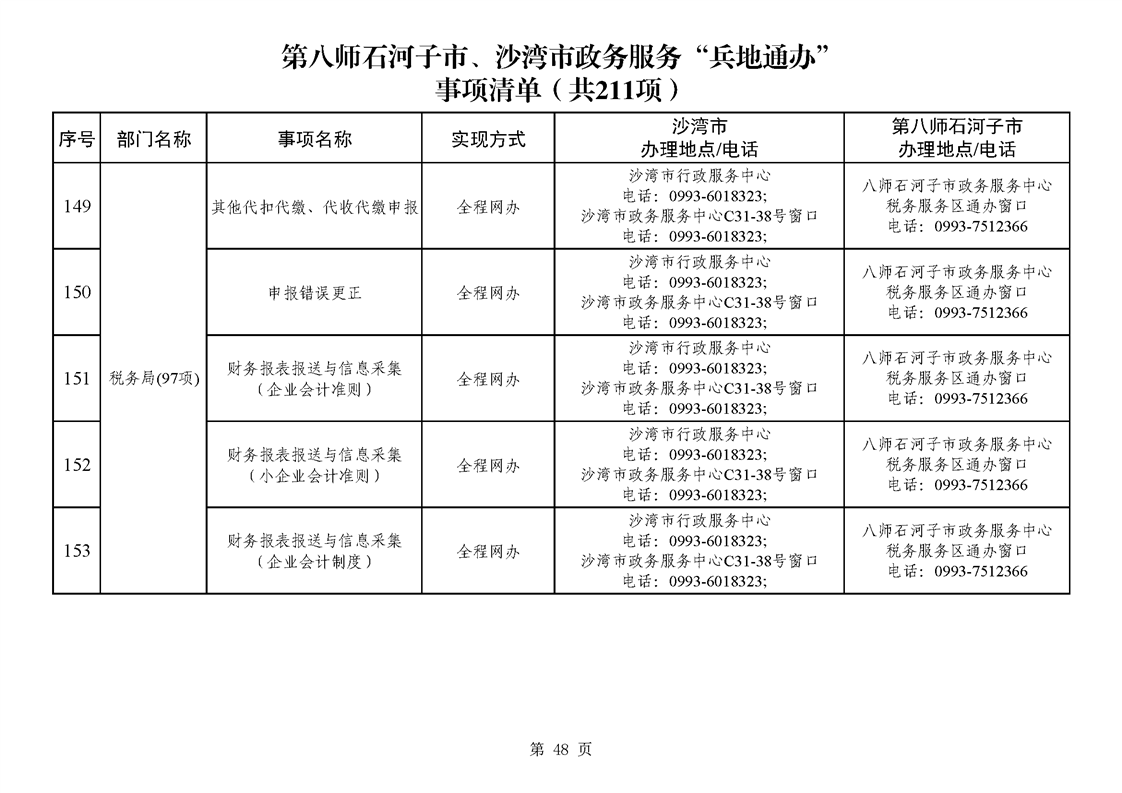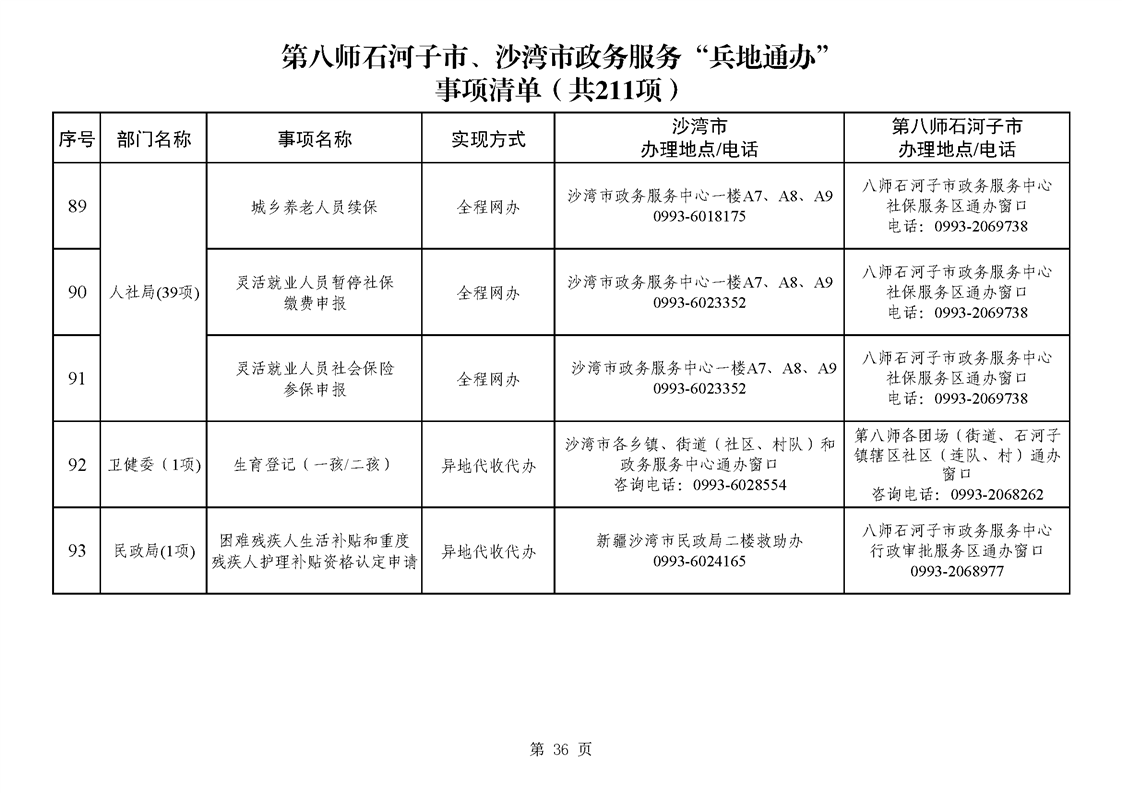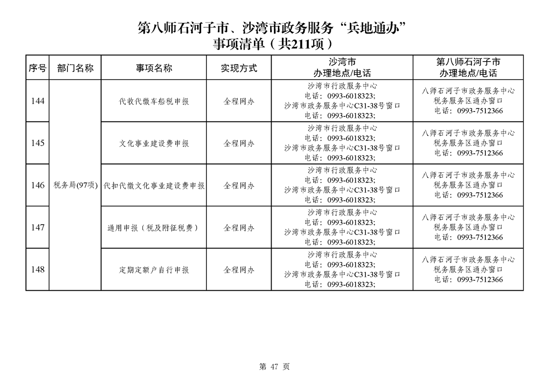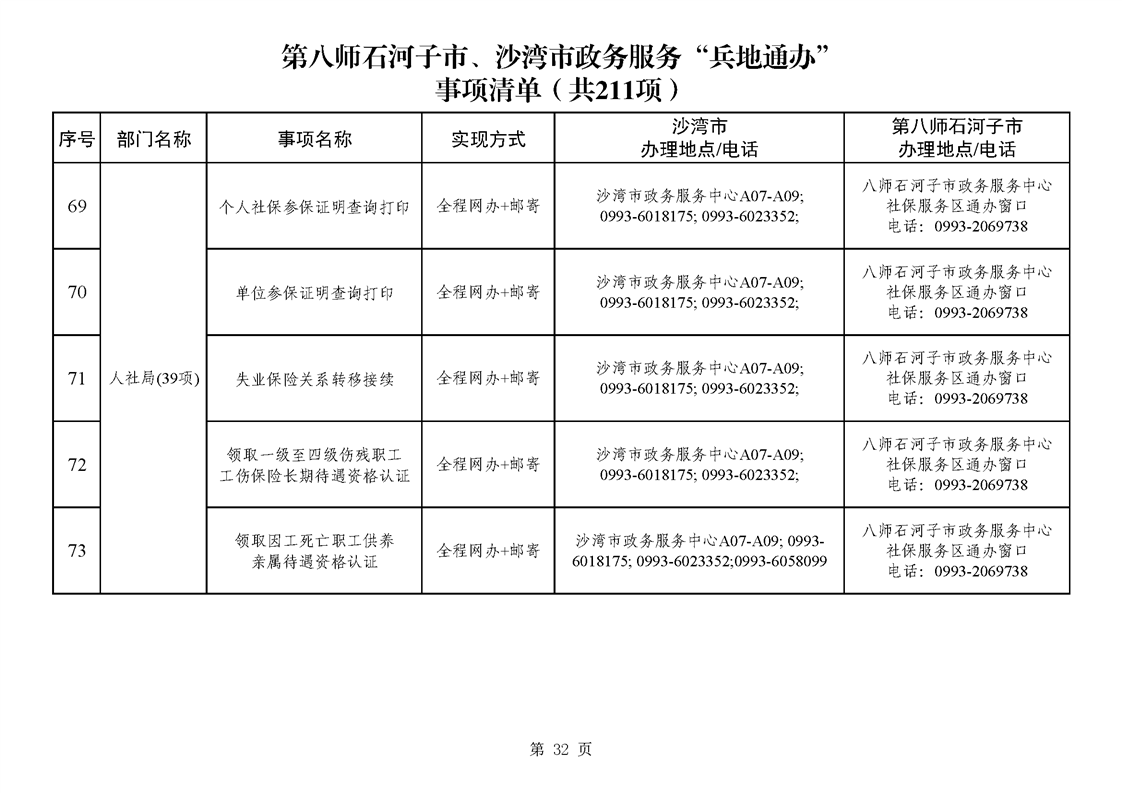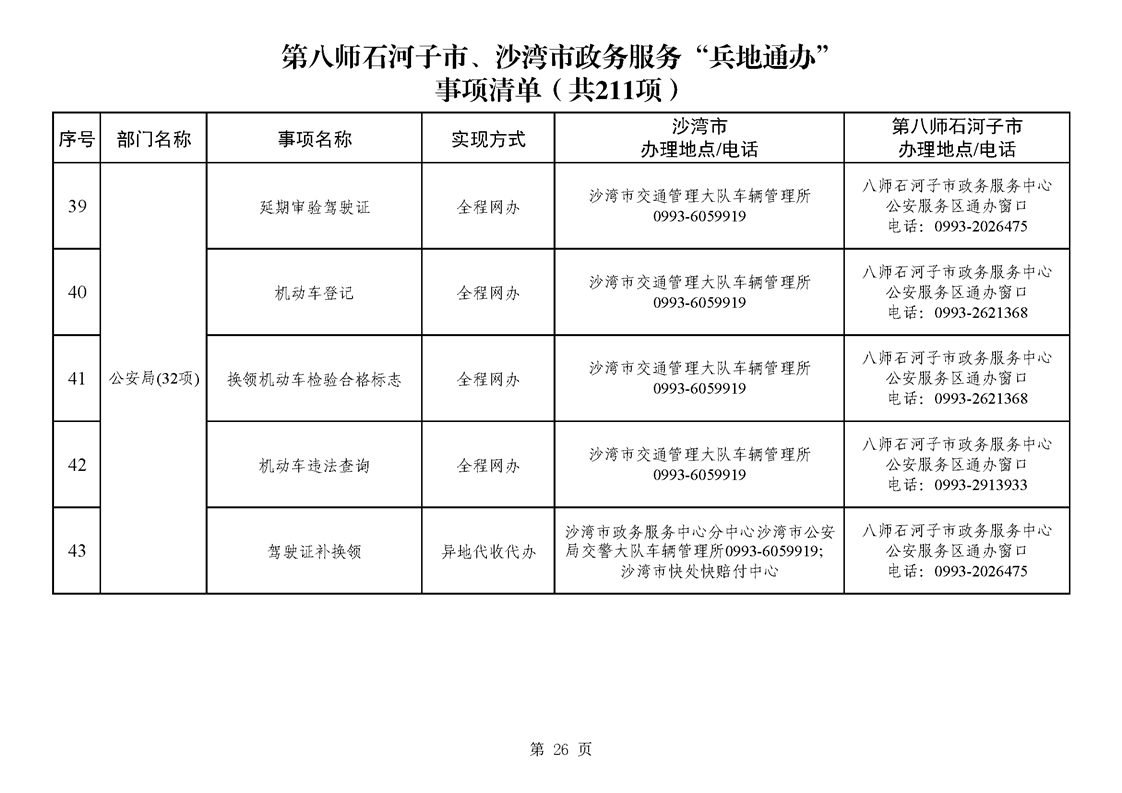 第八师石河子市、沙湾市政务服务“兵地通办”事项清单(211项)