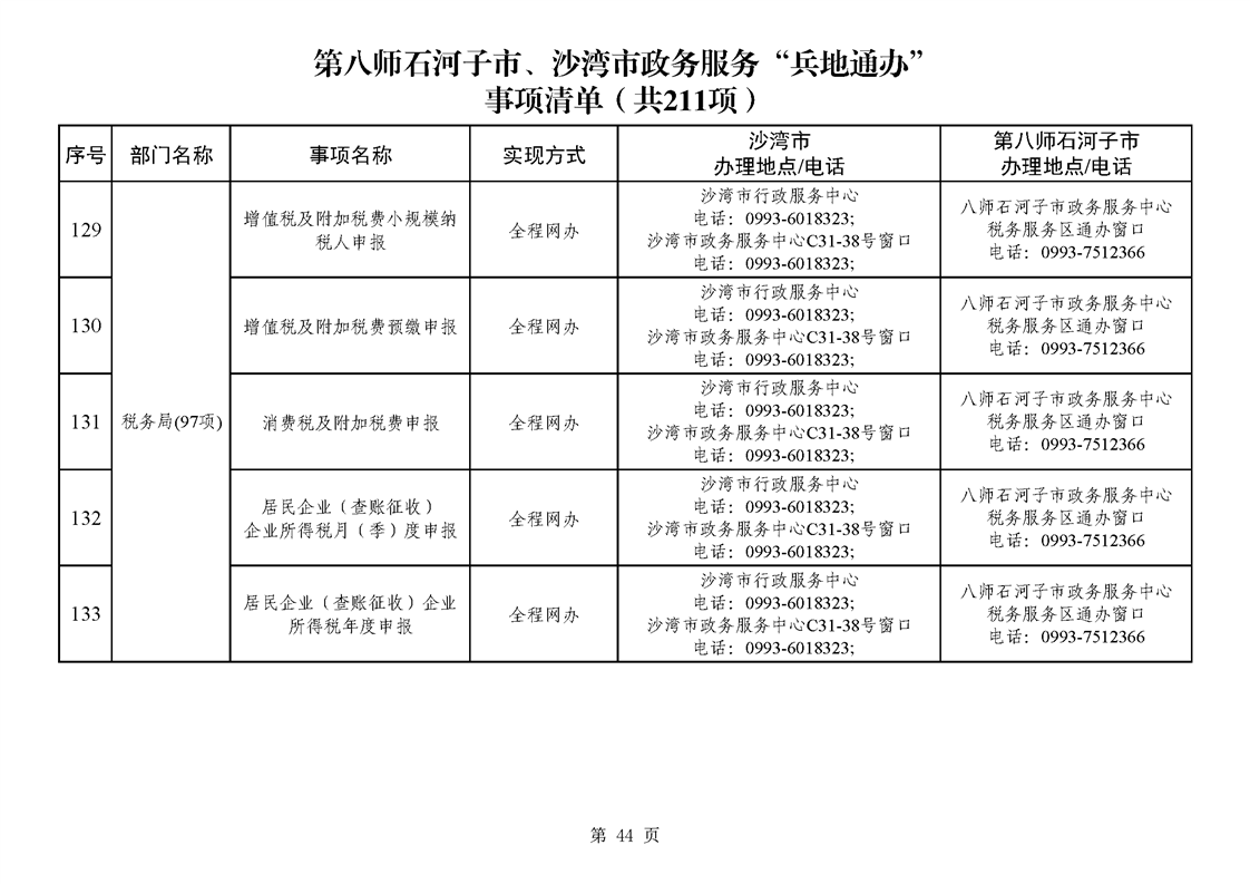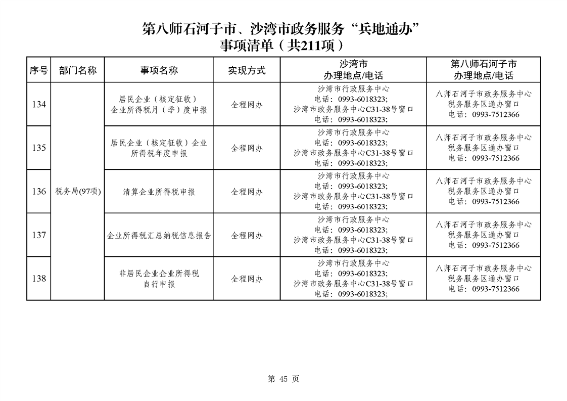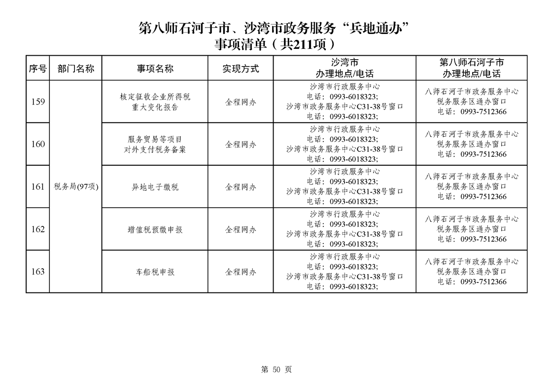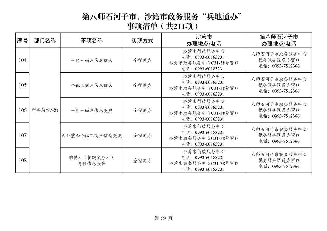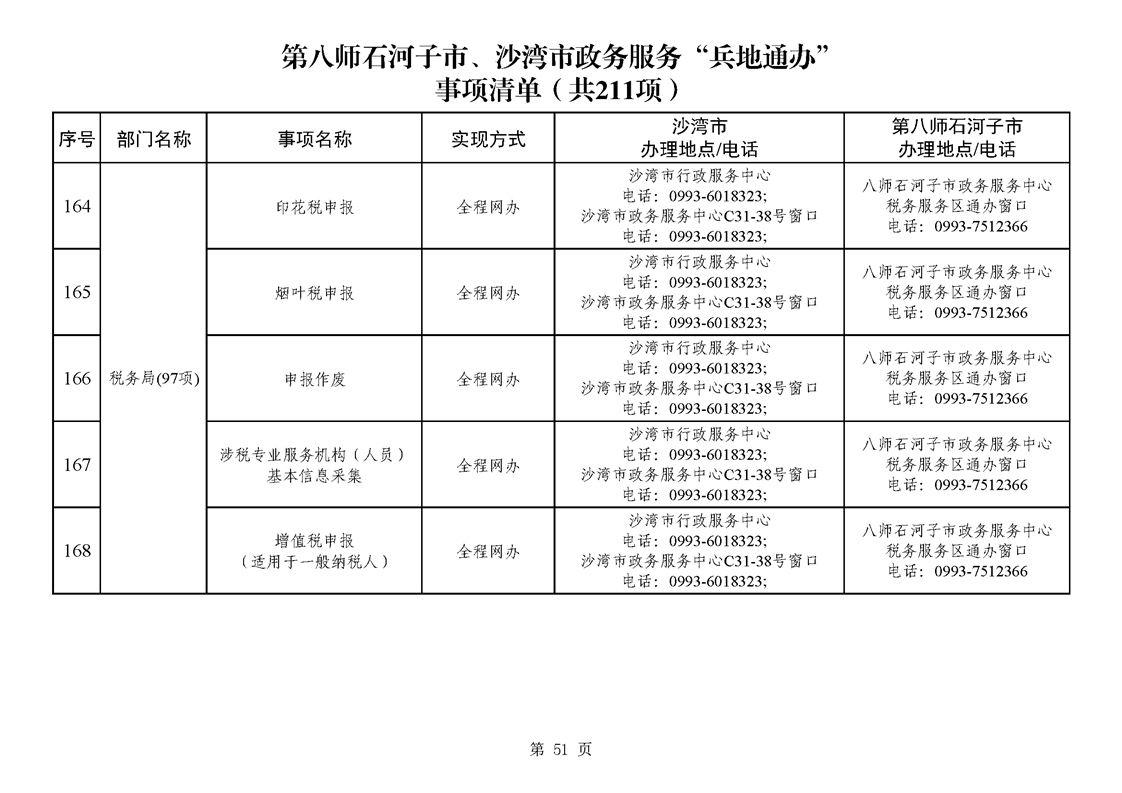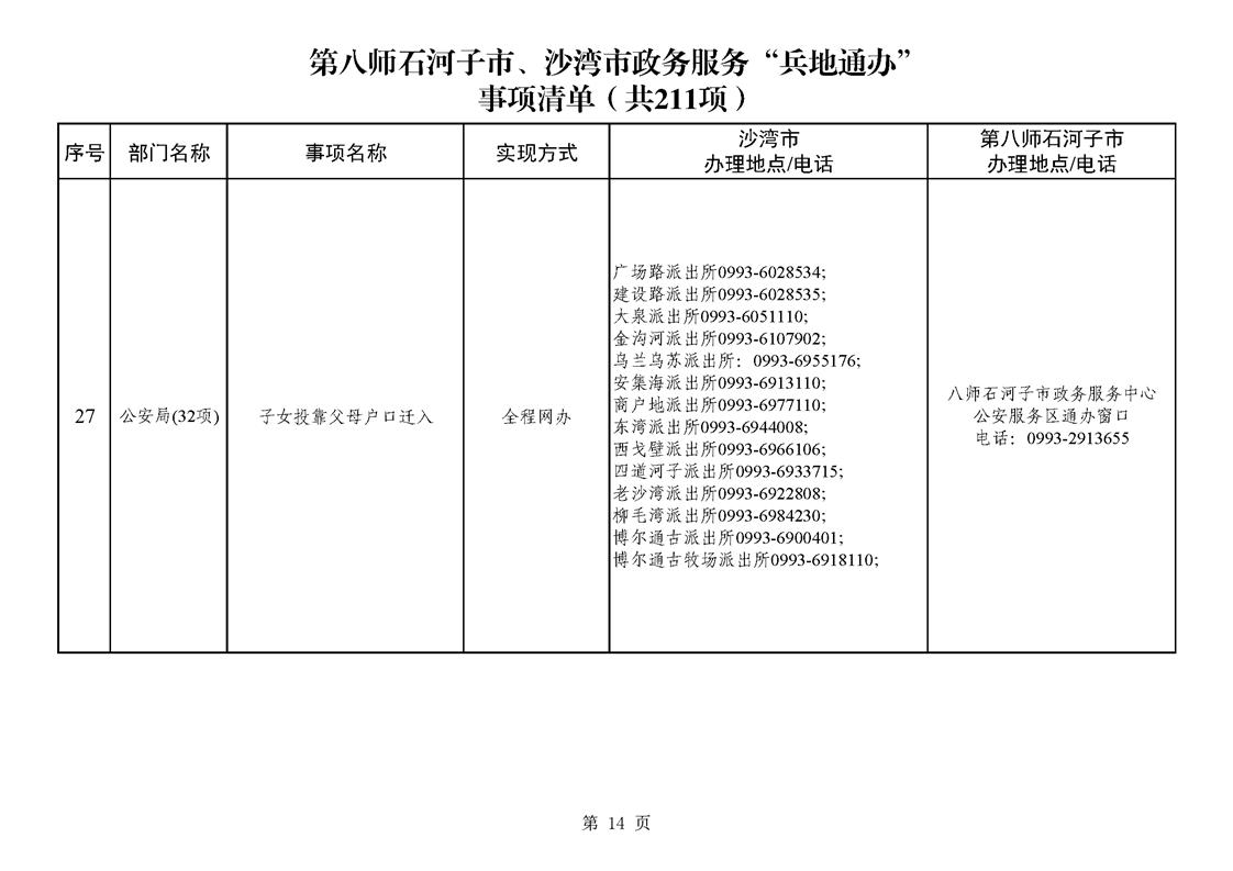 第八师石河子市、沙湾市政务服务“兵地通办”事项清单(211项)